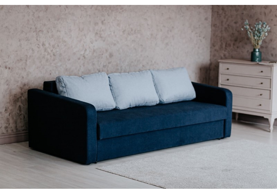 Завдяки йому ви завжди будете готові до несподіваних гостей, які вирішили залишитися у вас на всю ніч, так як цей диван висувається вперед і перетворюється з дивана в ліжко без всяких труднощів. Конструкція надійна і на цьому дивані може спокійно грати ваша дитина. Ви разом з усією родиною можете дивитися свої будь-які телепередачі або просто читати книги. Ця м'які меблі має під собою місткий короб для зберігання постільної білизни і не тільки.