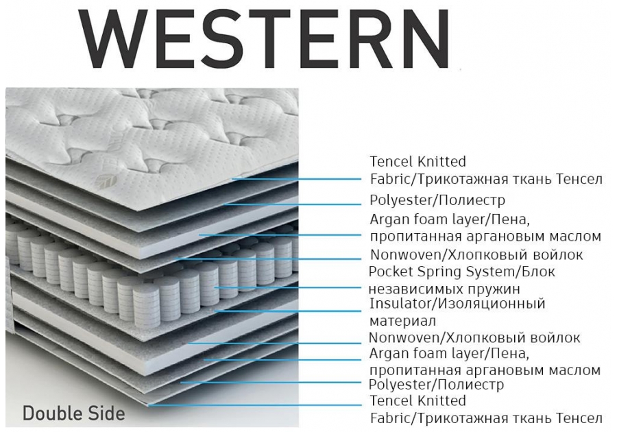Двосторонній ортопедичний матрац середньої жорсткості Western Argan з просоченням Аргановым олією.