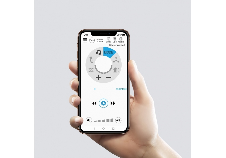 Музичний супровід на вибір: спів птахів та дзюрчання води, що утихомирюють дитячі мелодії та можливість підключення зовнішнього USB-накопичувача з вашою музикою.